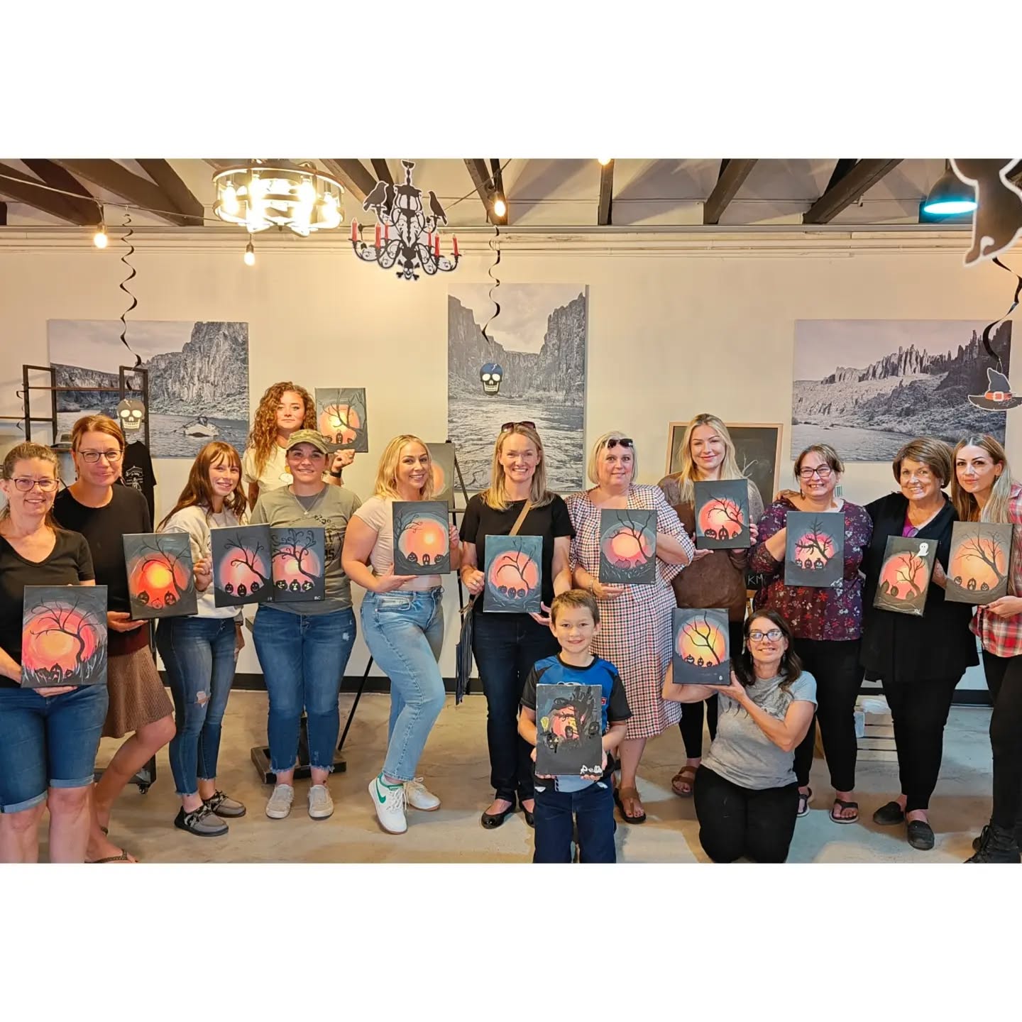 We supply all the art materials — canvases, paints, brushes, aprons, and easels — and Kayla will personally guide your group through a custom-tailored painting designed just for your event. Each class typically runs around two hours, offering plenty of time to create, relax, and enjoy the experience with friends, family, or coworkers.